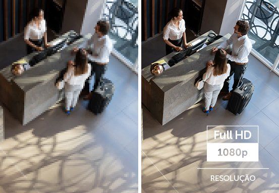A câmera possui resolução Full HD 1080p, o que proporciona imagens mais nítidas e ricas em detalhes